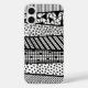 This Case features a hand drawn modern pattern in black and white. It shows dots, stripes and more. Unique phone case for her and him!