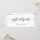 This modern, black and white gift certificate features elegant handwritten script typography, You can add your logo and a QR code to the back for a simple, stylish, and professional look.