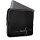 Black and White Modern Script Monogram Name Laptop Sleeve