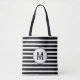 Black and White Modern Stripe Monogram Tote Bag