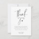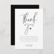 A simple black and white wedding thank you card with elegant black stylish script and a thank you message to your guests.