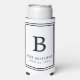 These personalized black and white Monogram tall seltzer can coolers/koozies are perfect for a wedding, engagement party, bridal shower or rehearsal dinner. The design features the trending black and white colour scheme with simple, modern fonts. Customize them with your Initial, name and event date to make them one of a kind! These will make a great favour for your guests that they will use for years!
