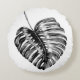 Black and white monstera leaf tropical palm round pillow