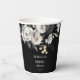 Moody black and white boho peony flowers dry leaves pampas grass elegant bridal shower template party paper cups personalized bridal shower tableware