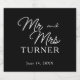 Set against a sleek black background, the design features Mr. and Mrs. [Last Name] in a fun and elaborate script font that brings personality and sophistication to the forefront. The wedding date is elegantly printed beneath in crisp white text, creating a clean and timeless layout that balances playfulness with refinement. It’s a stunning way to mark the moment and elevate your reception décor.