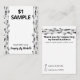 If you are looking for a simple way to display your soap samples and you're after a crisp and clean design then this black and white card is a great way to show off your handmade soaps to potential customers at your market stall. The design has a vertical string, heart and leaf design. to use this card, carefully cut down the vertical lines in the middle of the card with a blade and ruler, then thread your soap sample through, keep it in place with double sided sticky tape on the back.