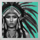 Black and White on Teal Native American Poster