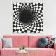 A tunnel-like optical illusion is created using a black and white chequered pattern, giving a dizzying sense of depth