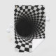 A tunnel-like optical illusion is created using a black and white chequered pattern, giving a dizzying sense of depth