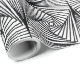 A black and white linework art made of straight lines, drawn so the there appear to be curves in the design. Eye catching and interesting, sure to catch attention!