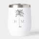 This coastal inspired monogrammed thermal wine tumbler features a preppy black palm palmetto tree on white with a monogram that you can personalize with your choice of initials on each side. Great for personalized gift bags and party favors.
