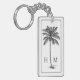 This modern coastal inspired monogrammed keychain features a cute black palm palmetto tree on white with a monogram that you can personalize with your choice of initials on the front and contact information on the back. Fun for personalized gift bags and party favours.