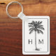 This modern coastal inspired keychain features a black palm palmetto tree on white with a monogram that you can personalize with your choice of initials on the front and contact information on the back.