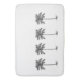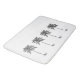 This modern coastal inspired bath mat features black palm palmetto trees on a background of solid white.