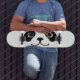 A cute black and white colour giant panda bear animal face with a smile and shiny black eyes. An original digital art design.