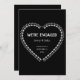 We're Engaged is a Black and White Gothic Engagement Party Invitation. Dark Goth Design with a Spine Heart form on the front, and a skeleton with a wine glass on the back. Vintage Public Domain elements.