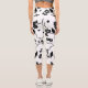 Black and White Pattern Birds on Cherry Blossoms Capri Leggings