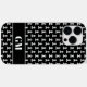 Black and white pawn chess piece custom monogram Case-Mate iPhone 14 Pro Max Case. Personalized cover with your own custom name or initials. Use ALT codes to change the icon into pawn, knight, bishop, rook, queen or king. ♕♔♘♗♖♙ ♚♛♞♝♜♟