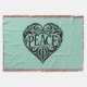 BLACK AND WHITE PEACE HEART THROW BLANKET