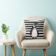 Black and White Penguin and Stripes Throw Pillow