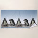 Here is a great beach towel which presents adorable African Penguins standing on a rocky ledge against a sky blue background. Penguins are aquatic, flightless birds whose wings have become flippers. Each has a black stripe and black spots on the chest. The pattern of spots is unique for every bird, just like human fingerprints