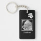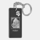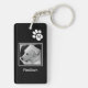 Black and White Photo of Cute Dog and Paw Initial Keychain