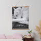 This tapestry features a black and white photo of Olive, a beautiful Labrador mix with her dad and customizable text message.