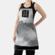 This apron features a black and white photo of dewy grape leaves and customizable initial.