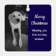 Black and White Photo of Sad Dog Missing You Blue Metal Ornament