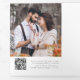 Minimalist Black and White Photo QR Code Timeline Wedding. An all in one invitation, details and RSVP with. The words The Wedding Of, Details, Reception Timeline and Our Love Story are in a set handwriting style script. Easily personalise the rest of the text to your own details. Replace the sample image with your own. Add your QR code to your wedding website makes this a convenient option for your guests to RSVP and see all the details without the need for separate RSVP and details cards. Your QR code will be automatically generated to update the sample code in the design, when you simply change the sample URL in the template with your own wedding website URL.