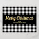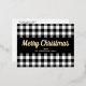 Black And White Plaid Script Christmas Gold Foil Holiday Postcard