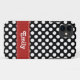 This custom black and white polka dot design with a multi dot pattern can be personalized with your name on the red stitched ribbon design. This makes a cute and stylish gift for women, a teen or any girly girl. Artwork © Chrissy H. Studios, LLC. All Rights Reserved.