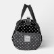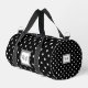 Embrace timeless style with a playful twist in the "Black and White Polka Dot Initials Pattern Girly Duffle Bag." This charming accessory combines the classic appeal of polka dots with a dash of personal flair, making it a perfect pick for those who love to stand out with a touch of femininity and fun. Featuring a captivating pattern of black dots on a crisp white background, this duffle bag effortlessly captures the essence of girly chic.