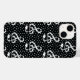 Contemporary music design featuring a white treble clef with black dots on a background of black and white polka dots. Great gift for the music lover