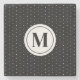 Black and White Polka Dot Pattern Monogram Stone Coaster