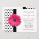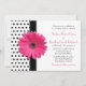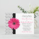 Chic, retro black and white polka dot pink gerbera daisy flower wedding invitation.