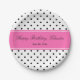 Black and White Polka Dot with Hot Pink Birthday Paper Plate