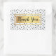 Thank You sticker with modern black strokes polka dots pattern on a silver white background.