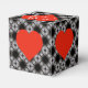 This elegant design makes a perfect favour box for Valentine's Day or any special occasion. Featuring a black and white lace-like patter, this favour box has red hearts on three sides of the box. The red heart, on the top flap, has text that reads "Be My Valentine". You can be customized this text with your own message.
