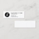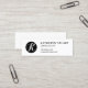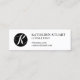 A black and white professional design featuring white script monogram on black circle element with business information in black professional serif font style on white background.