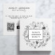 Our "Black and White QR Code Website Modern Botanical Square Business Card" blends style and functionality. It features a striking hand-drawn black floral design on a white background, framed by a black-bordered rectangle that highlights your name and title. The reverse side is equally sleek, allowing you to personalize your contact information, include social media icons, and add a username field. A QR code links directly to your website, facilitating seamless connectivity. This card's clean and elegant design makes it an essential tool for professionals looking to make a lasting impression.