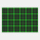 A wrapping paper sheet set with a plaid pattern in black on three background colours, white, red and green. Customize the background colours, pattern sizes among other options.