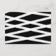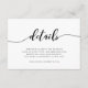 Stylish Wedding details card featuring the words "details" in a relax cursive script in black against a white background. Card has a black back side featuring overlapping white lines.