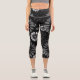 Black and White Retro Floral Capri Leggings