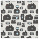 Black and White Retro Photographer Camera Pattern Fabric
