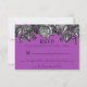 These easy-to-personalize wedding invitation RSVP cards have a bold distinctive style. They feature a striking antique engraving style illustration of roses in black and white, with bold black lettering all set against a bright electric purple coloured background.