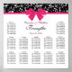 This formal wedding reception seating chart features an elegant black and white rose pattern, a hot pink bow.