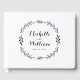 Personalized wedding guestbook featuring an elegant and rustic floral wreath design in black and white that can be personalized with the names of the bride and groom.