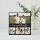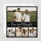 Elegant Black and White "Love and thanks" Script 4 Photo Collage Wedding Thank You Card. Stylish, modern, minimalist wedding thank you card template featuring four (4) photo on the front and one (1) photo on the back. With the text "Love and thanks" in a swirly hand lettered typography swash-tail font in white on black colour background. Personalize the custom name and thank you message. If you prefer to handwrite your note, delete the sample text to make more space. If You need help or matching item, please feel free to contact to designer!