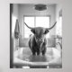 Black and White Showering Highland Cow Bathroom Poster